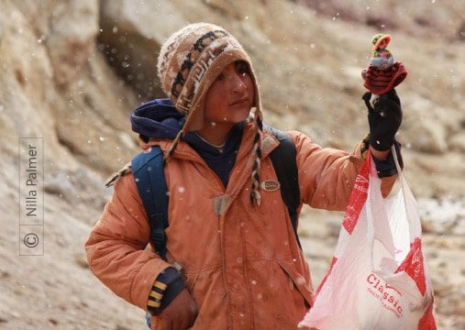 There were quite a few of these young kids (and younger), selling arts & crafts in the snow in the Andes at over 4,000mts; too cold in a bitter wind.