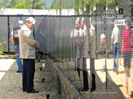 During a Memorial Day weekend tribute to our military troops I captured a quick moment of prayer at the Traveling Vietnam Memorial Wall.