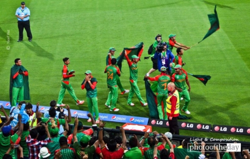 Adelaide was the most desired location to be in for every Bangladeshi on the 9th of March due to the eve of Bangladesh tigers bidding farewell to the English lions from the world cup. South Australia is best know in Australia as the festival state and the hub of festivities were right at the Adelaide oval on that very day. Bangladesh supporters came in numbers with the flares of red and green to back the Tigers on the field. Even the Barmy Army were not enough to oust the jubilation out of the Bangladeshi supporters in the Adelaide Oval. As soon as Rubel Hossain uprooted the stumps out of the ground the entire stadium erupted with joy. Some emotions ran so high that a few tears of happiness were shed and why should it not be as it was Bangladesh’s first Quarter Final berth in the history of the Cricket world cup. This picture was taken right before the post-match presentation ceremony. The Bangladesh players came down to the supporters to pay homage for their unconditional support throughout the humid day at the Adelaide oval. The month of March always is the month of glory for the Tigers. May the Tigers fight with all their might in the Quarter final stage of the world cup and bring back glory again to the cricket crazy nation, Bangladesh!