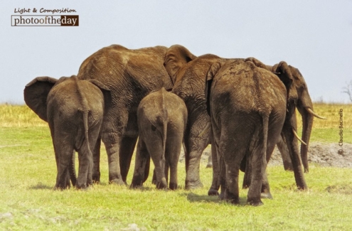 This image was captured in Botswana on the shore of the Chobe river. A small group of elephants were coming and going to the rivers edge to drink and to cool themselves in the water. As I was photographing them, I noticed this smaller group just get up a begin walking away at the same time. I thought the rear view of elephants walking was interesting and titled it “Making an Exit”.