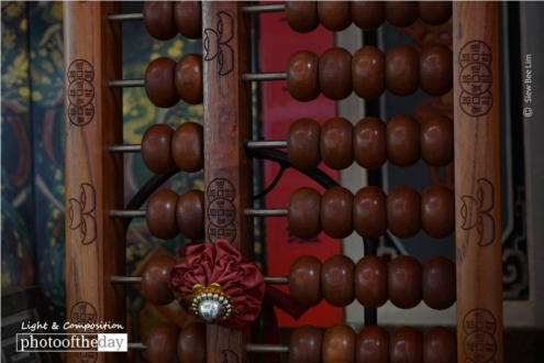 This was taken outside a Taoism temple in town, when its doors were still closed on an early July morning. It was one of the displays outside the temple. I did not come across another one elsewhere. With doors closed, the background became the doors’ painting, looked neater and enhanced the subject.
