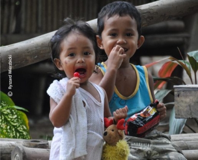 On the way from Puerto Princesa to San Vincente on Palawan Island, Philippines I stopped by the river and visited a family farm who invited me for a fresh coconut. During my mate Paul Drzazga was exploring the riverside area with his drone I did several pictures of the family and their household. These kids with lollipop were very interested posing for my camera.