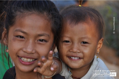 This photo was taken during my visit in Ngong Khiaw village in northern Laos, in December 2012. As usual in such kind of situation local kids were gathering around to see who visited the place. Older children were taking care of the young ones, so literary they take a part of responsibility of upbringing and have a big input of the whole childhood of their brothers and sisters.