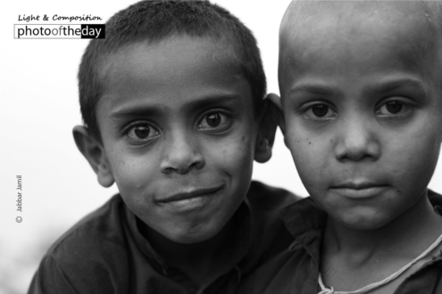 I saw them playing outside in the slums area, in Sialkot. It was late afternoon, around 5 pm then, an hour before sunset. I was free and wanted to take some photos with my camera, so that I can see them later. Frame is narrower, because most of the time I use 50mm on crop sensor. I sometimes miss some elements in the frame.