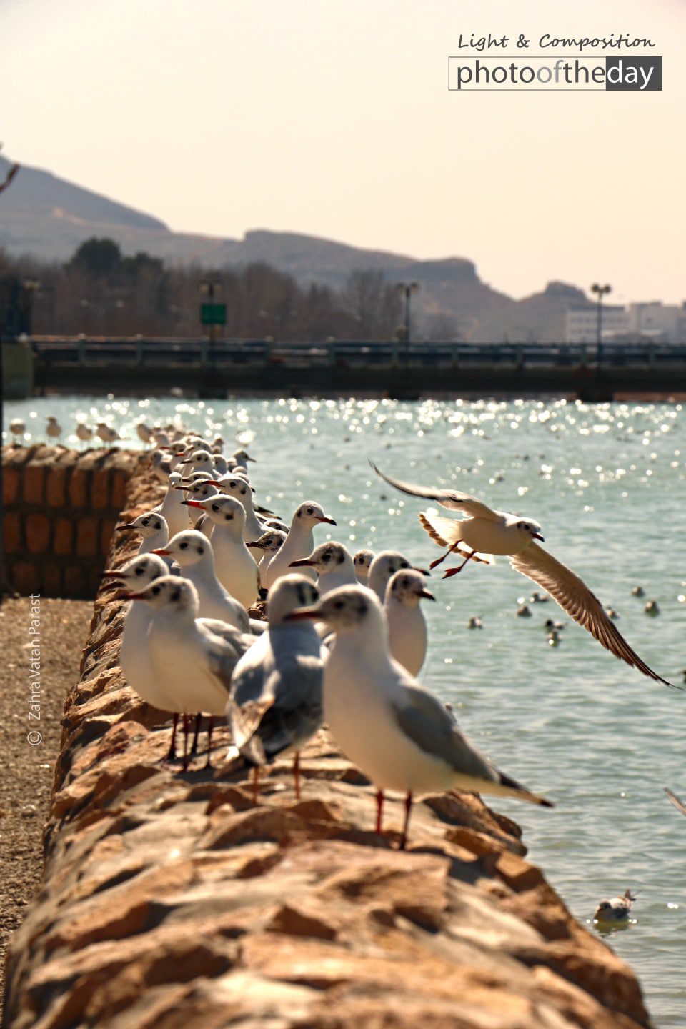 There is a lake in Shiraz, where every year immigrant birds come. Many people come to this lake from all around the city to watch the beauty of these birds. The scene makes every one happy as it is very beautiful, and people enjoy it a lot.