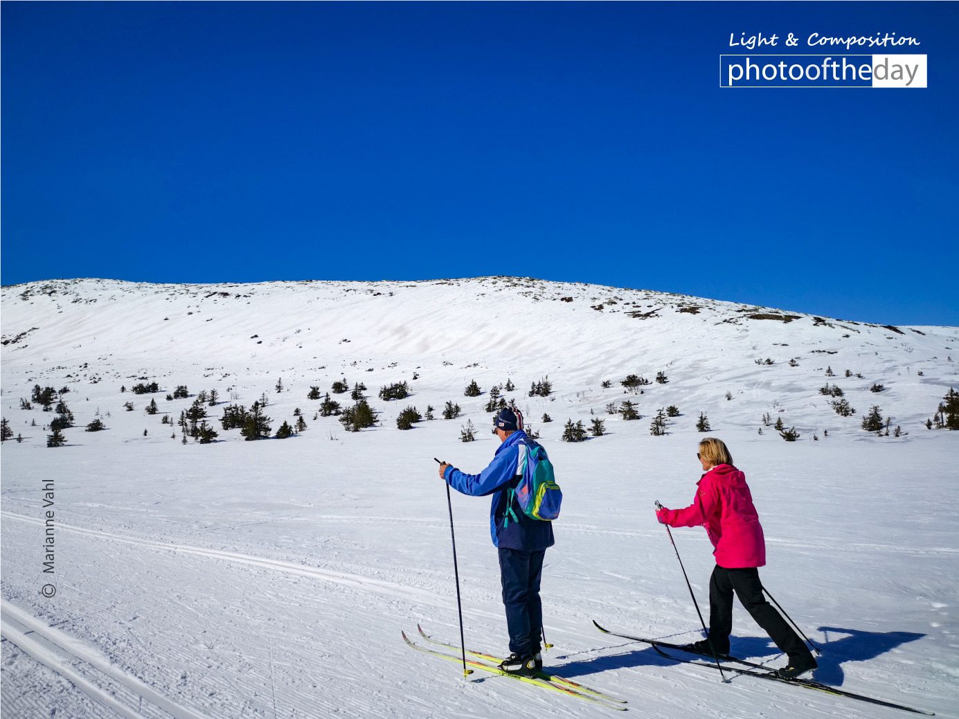 The picture is taken this winter (2019) at the skiresort Trysil in Norway. At the age of 82 and 76 my parents were crosscountryskiing around the Skurufjellet Mountain. Despite their age, they never miss a chance to work out. I had a hard time following them, and used every opportunity to stop, rest and take some pictures.