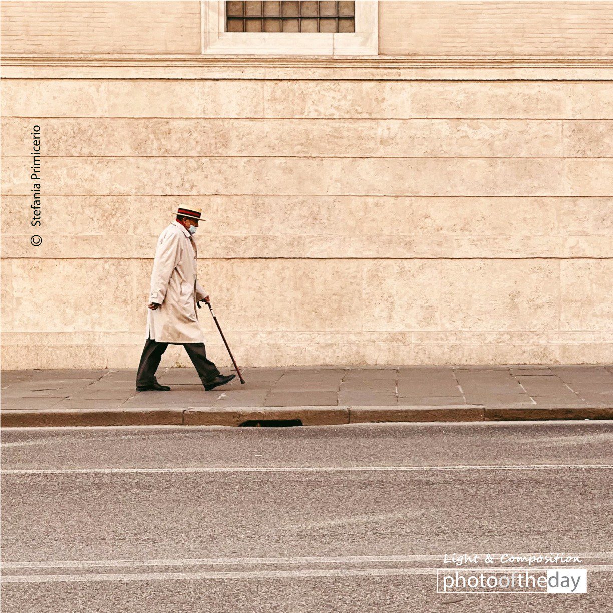 An old elegant man was walking near piazza Campo de Fiori, in the heart of Rome. He caught my attention for his elegance and his way of walking so proud with his walking stick. His clothing is sophisticated, despite the lockdown that has just ended due to Covid time.