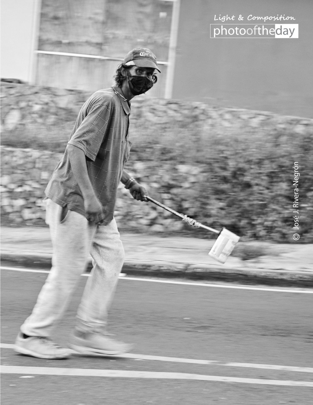 This photograph was taken in a regular busy day at a neighborhood in Arecibo. Taking advantage of the traffic every day, this man crosses along the street waiting for the street lights to turn red so he can make his next move. Maybe he won’t make a fortune, but definitely, he will make his daily bread. I caught him looking straight at me so I had to give him a few dollars.
