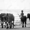The photograph presents a striking study in contrasts – the youthful strength of a young man juxtaposed with the weighty burden he carries. The monochrome palette emphasizes the textures of both the wood and the subject’s skin, highlighting the physicality of labor and the relentless sun. The composition is powerfully direct; the subject’s gaze meets the viewer’s, creating an immediate and compelling connection. The stark simplicity of the background, a blurred expanse of sand, focuses all attention on the figure and his load, amplifying the sense of isolation and resilience.