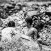 The photograph presents a study in quiet resilience, centered on a woman seated amidst a tangle of fibrous material, her hands actively engaged in weaving. The monochrome palette emphasizes the textures – the rough weave of her clothing, the intricate patterns of the fibers she manipulates, and the weathered lines etched upon her face. The composition is deliberately grounded, anchoring the subject within her environment, yet the soft focus and shallow depth of field create a sense of intimacy, drawing the viewer into her personal space. The interplay of light and shadow subtly sculpts her form, highlighting the strength in her posture and the vulnerability in her gaze.