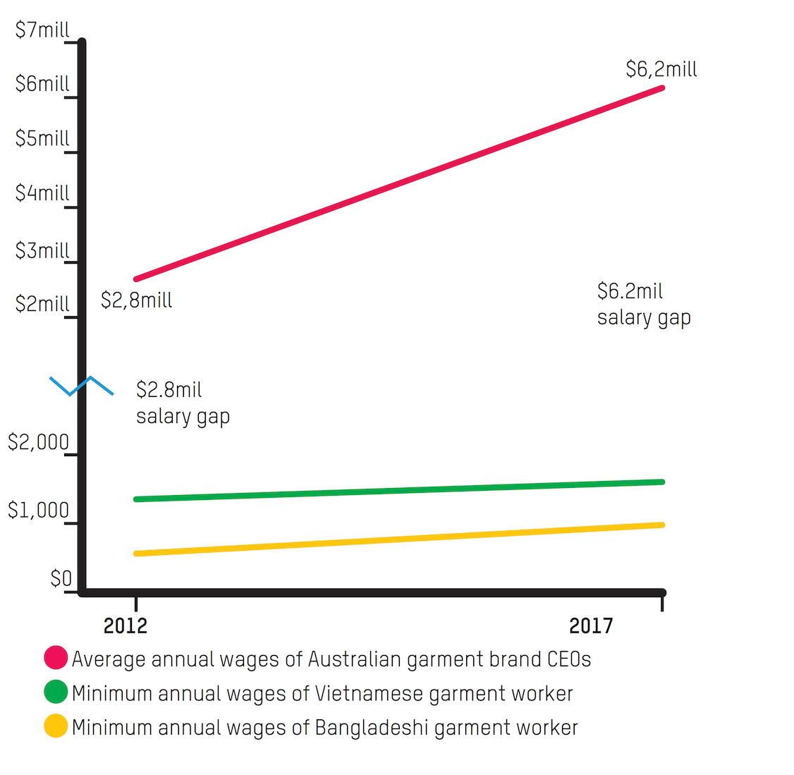 Figure B: Salary gap between Australian CEOs and Bangladeshi garment workers