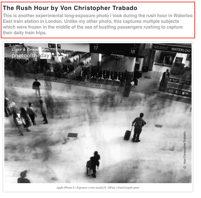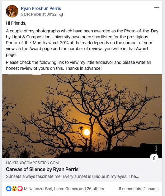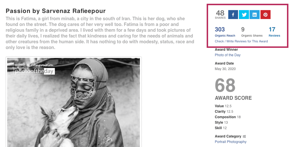 Sharing the link of your award photographs cannot be done directly. You can either put that link of your Light & Composition University photographer’s profile as your website link in your Instagram profile, or put each of the award photograph link there. Do make the Photo story in Instagram with each of your award photographs. Take a look at the example of photographer: Hanan Aboregela, how she put Light & Composition Photograph’s Profile link in Instagram and make stories with the awarded photographs.