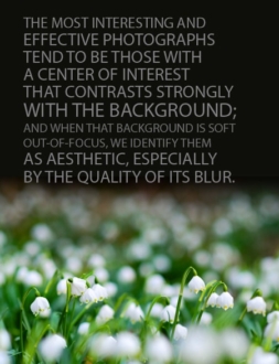 The most interesting and effective photographs tend to be those with a center of interest that contrasts strongly with the background; and when that background is soft out-of-focus, we identify them as aesthetic, especially by the quality of its blur.