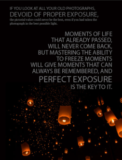 If you look at all your old photographs, devoid of proper exposure, the pictorial value could never be the best, even if you had taken the photograph in the best possible light. Moments of life that already passed, will never come back, but mastering the ability to freeze moments will give moments that can always be remembered, and perfect exposure is the key to it.